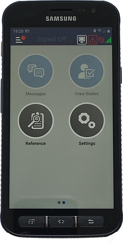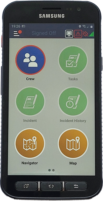 Crew - Use this to sign on / off. A red ring indicates there are no crew signed on, a green ring indicates crew are signed on