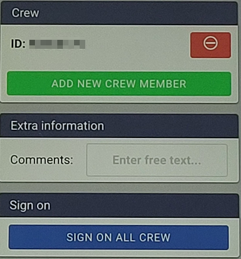 4. If there are two of you booking on, use the ‘ADD CREW MEMBER’ button again and input their personal number. Otherwise, press the blue ‘SIGN ON ALL CREW’ button